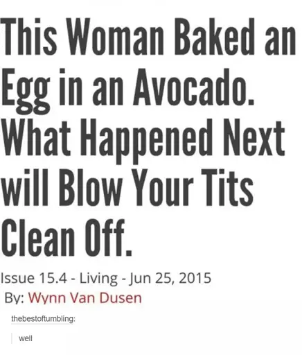 What happens if you don’t have tits? Or you do have tits, but are in another room when it’s baking?