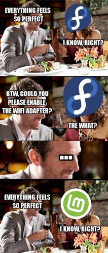 Of course, the Ubuntu derivatives made this easy enough by just including it, but Fedora was much more purist about open source and so wouldn’t even tell you about rpm-fusion, let alone enable proprietary drivers for basic network access.