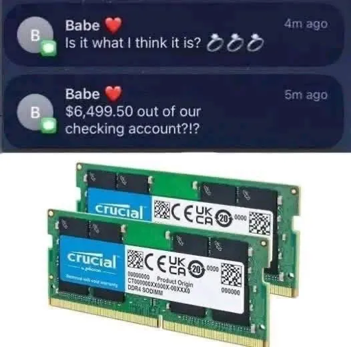 If the imaginary people in the screenshot had 6.5k in the shared account that had not been wasted already, it would mean they were at least somewhat financially responsible… Until one of them bought RAM.