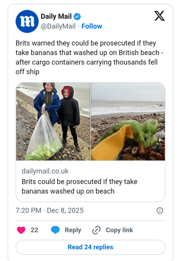 This government has arresting people for demonstrating against that government’s active support of the mass murdering of children in Gaza, so morally speaking, putting bananas ahead of people (even poor Brits who might actually need those free bananas) is nothing in comparison.