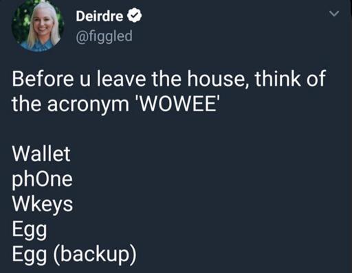 Phone, Wallet, Whistle, Egg, Egg, Keys