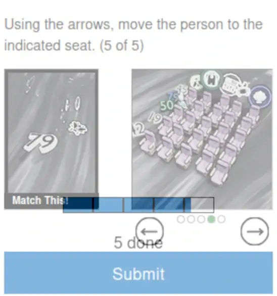 I’d assume the arrows move the person to a different seat. The screenshot shows the solved captcha.