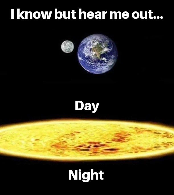 I think you drew flat moon at the wrong angle though, it always faces square on to flat earth.