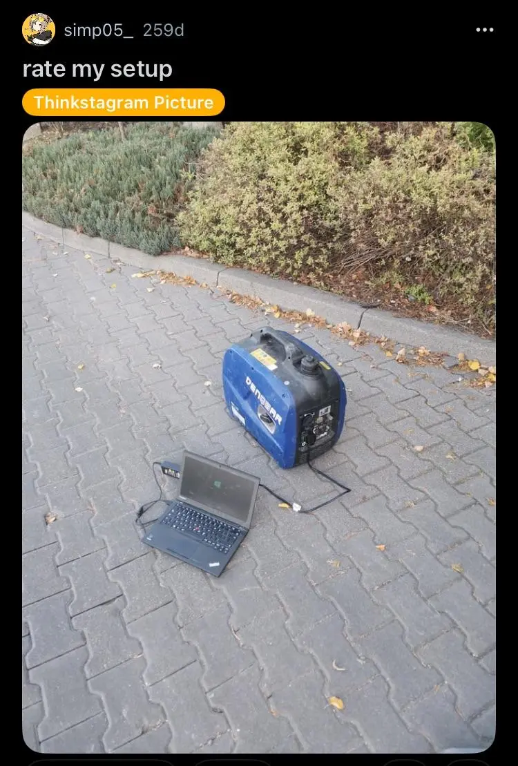 Duct tape the Thinkpad to the gennie and you’ve got a lovely, portable all-in-one.