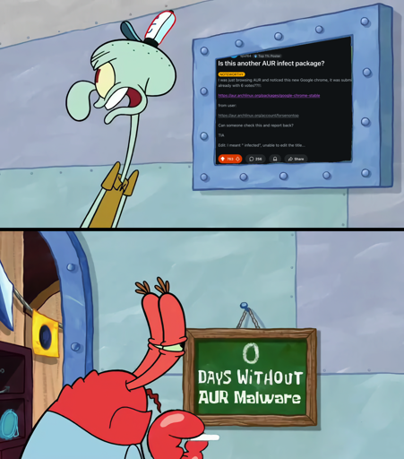 arrow-up1523arrow-down1imagePersonally I'm grateful to not need 3rd party packageslemmy.worldTheTwelveYearOld@lemmy.world to linuxmemes@lemmy.worldEnglish · 4 months agomessage-square79linkfedilink cross-posted to: linux_memes@sopuli.xyz