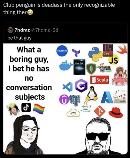 I mean, most impressive devs might be a stretch, but if you hang out at any alternative hacker / Linux event… Let’s say I have felt like the most conservative and straight dude in the room on more than one occasion
