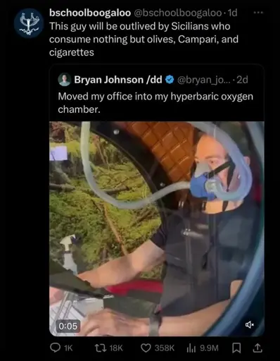 hes very obsessed with extending his lifespan compared to other billionaires, his pretty extreme. hes basically like that billionaire in ROYAL PAINS show from usa network, where he was using sharks, unsanctioned research from cuba, to “extend his lifespan, treat his illness”