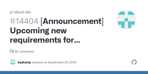 I love the answer in the FAQ: https://github.com/yt-dlp/yt-dlp/issues/14404#issuecomment-3330980464