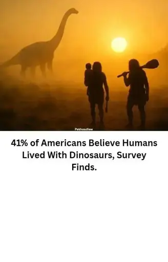 “Humans and dinosaurs living together” is a popular trope in entertainment. Surprise, surprise - repeatedly exposing people to this anachronism will lead people to believe the thing.