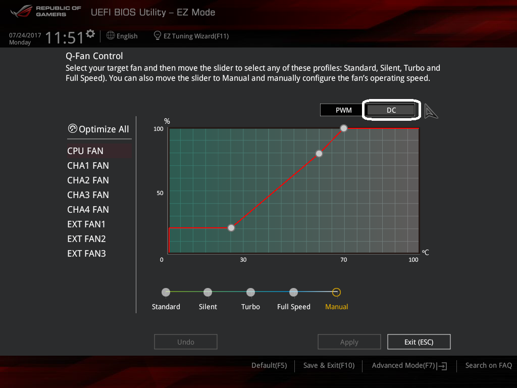 For example, mine looks similar to this screenshot. You just set the curves how you want based on temp:
