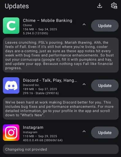 Also happens with some apps on fdroid. “Update available” - click to see, nothing there