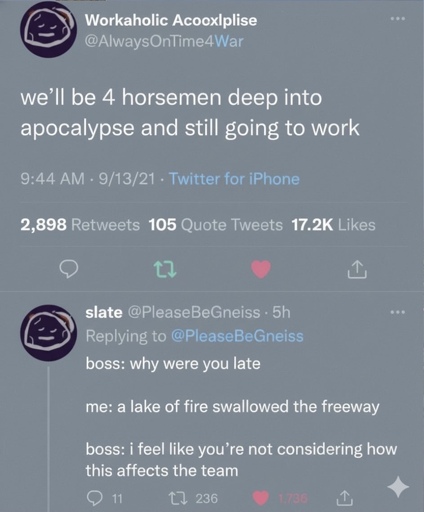 “Yeah but you should be monitoring slack at all times”