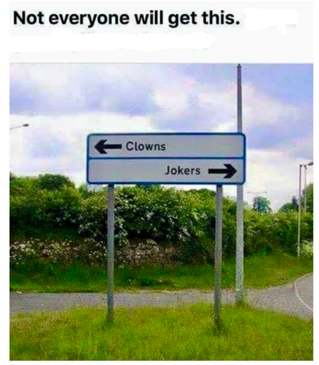 It’s from the song “Stuck in the middle with you” by Stealers Wheel.