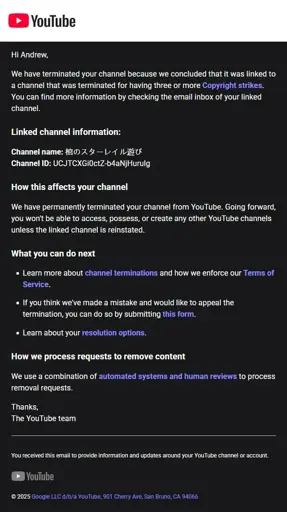 Isn’t it saying that Enderman’s channel was linked (involved with, co-run by, some other AI based bullshit, etc) to a channel that had copyright strikes, and that the Japanese channel was the one with copyright strikes?