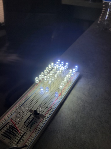 - I’m the middle of reading your comment I realized what I did wrong when making it in the breadboard. - So I got the switch and parallel LEDs working, but the single LED connected directly to positive wouldn’t light. The resistor and LED made a loop back onto the same positive side of the breadboard, so the current had no reason to flow through them.
